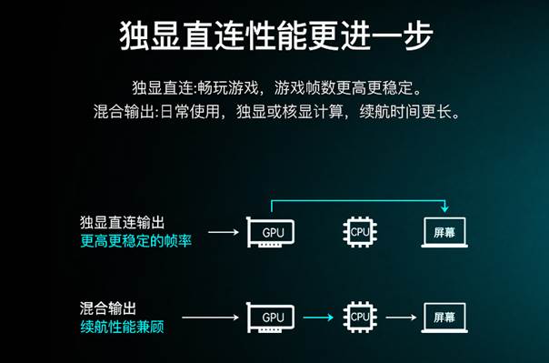 另外值得一提的是,X10Pro游戏本还具备了电竞玩家喜闻乐见的独显直连功能,可以绕过核显直接将画面输出到屏幕上,有效提升了整机在游戏时的帧数,且在颜色深度上也有着更强大的表现。
