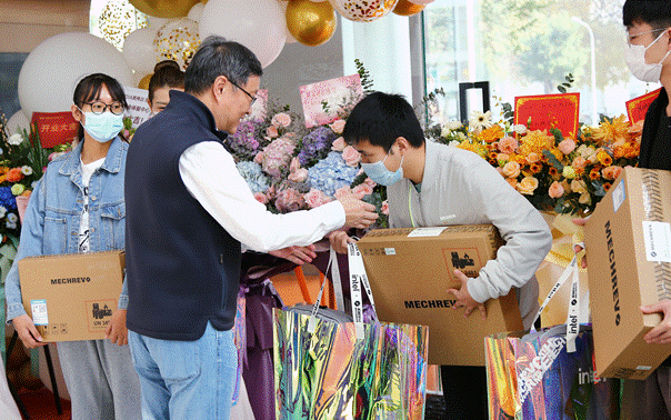 开业当即便有三名玩家现场通过优惠购买了机械革命笔记本产品,为了回馈机械革命粉丝的热情,周侠总为他们进行了授机仪式,并颁发了价值千元的大礼包。