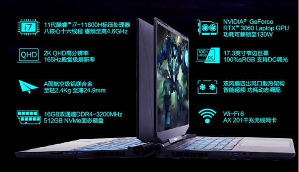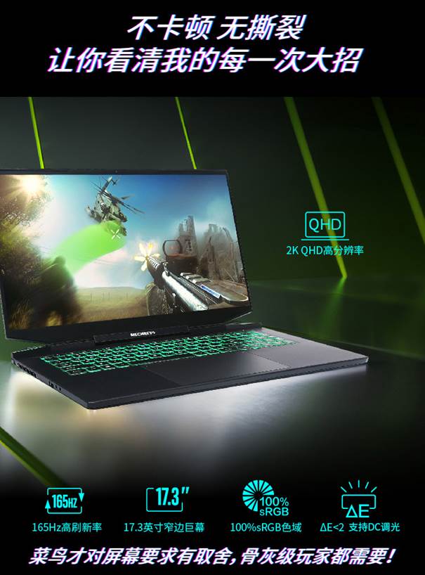 机械革命钛钽Plus能够成为全能游戏本的一个原因是RTX 30系列笔记本电脑GPU,二零一个原因是其使用了17.3英寸的165HZ高刷新QHD高分辨率屏幕。能够显示100%sRGB的高色域,并且色准达到了ΔE<2的高素质表现。不管是在激烈的电竞游戏中还是对色彩要求严苛的设计工作上,钛钽Plus都能够提供堪称完美级的表现。