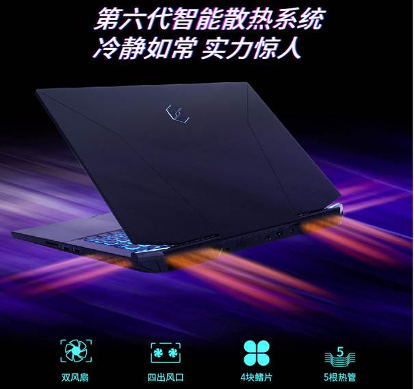 钛钽Plus游戏本性能上的表现大家有目共睹,为了能更好的进行长时间的高性能释放和降低整机温度。机械革命为其配备了第六代智能散热系统,该系统拥有多达5根纯铜热管,可以将CPU和GPU的热量快速传递到四块散热鳍片上,通过两把经过动平衡调教的风扇排除机身外。