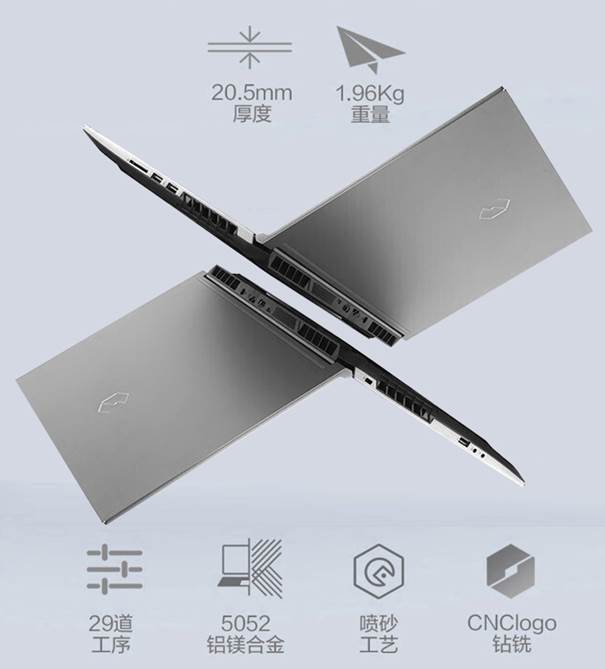 1.96kg重量与20.5mm厚度的实现,并不是只靠简单的缩小尺寸与减少用料,而是得益于机械革命自有工厂的强大研发实力。机械革命Z3 Air游戏本通过在A/C双面使用阳极氧化喷砂工艺的5052号高档铝镁合金材料,使得其质感和外观成为了游戏本中的翘楚。
