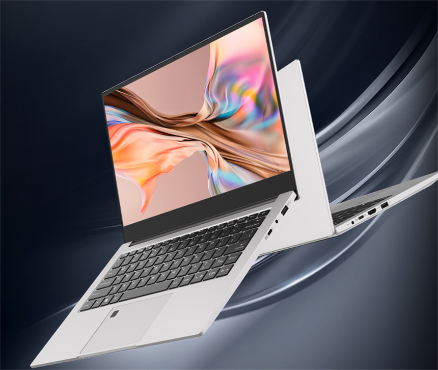 无界14轻薄本采用了高等级的铝合金作为机身主材质,有效增加产品耐用度的同时兼顾了轻量化。表面还经过细致的阳极氧化喷砂工艺处理,手感细腻的同时增加耐磨性能。除此之外,机身四周还经过了CNC高精度钻铣加工,在光线下能够闪烁出耀眼的金属光泽,进一步增强无界14轻薄本的质感。轻至1.4kg的整机重量可以轻松单手托起,方便放入背包通勤携带。