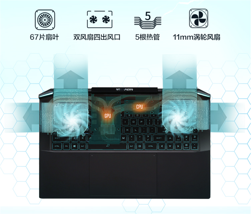 为了能让蛟龙7游戏本长时间以高性能进行电竞对抗,机械革命为其配为了第六代的智能散热系统。其具备了多达五根大尺寸热管和双风扇四出风口。能够快速将热量排出机身外部,长时间高负载运行也能够有着冷静的表现。