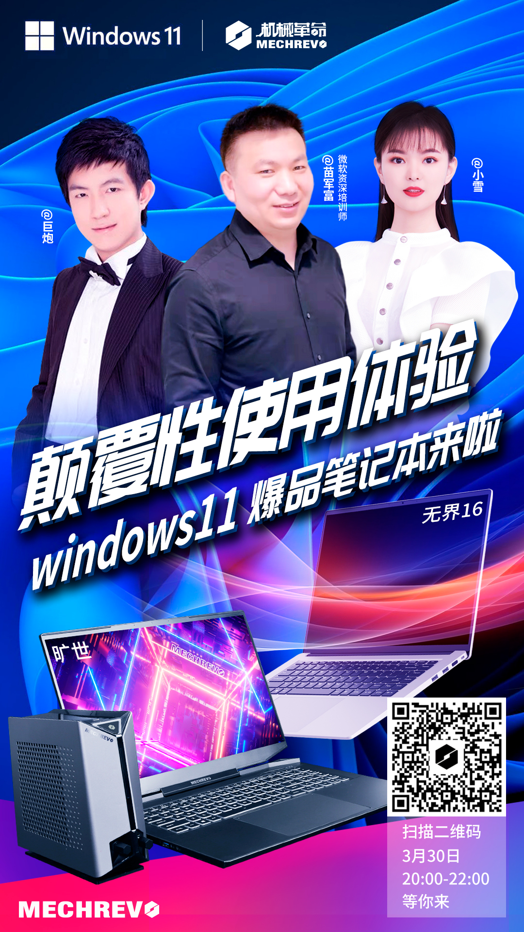 Windows 11系统已经发布一段时间了,相信大家已经对新系统有了一定的了解,机械革命全线笔记本产品已经预装带来颠覆性体验的Windows 11系统。贯穿整个三月的机械革命八周年宠粉月持续进行,今晚20:00机械革命邀请到微软资深培训师苗军富先生来到官方直播间为粉丝们带来一场颠覆性的Windows 11使用技巧表演,并送出海量八周年粉丝专属大礼。