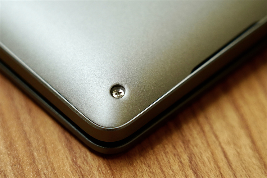 清华同方然14轻薄本ACD面采用阳极氧化喷砂工艺的铝合金材质,边缘圆润不剌手,在超高性价比的前提下依旧保持良好的做工。枪灰配色加上中间圆形THTF LOGO,符合时下商务人群的审美特点。