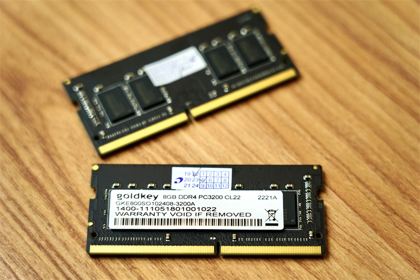 在板载LPDDR内存已经成为轻薄本常规做法的背景下,清华同方依旧坚持使用可替换DIMM内容显得诚意满满。内存来自GoldKey的8GB DDR4-3200,两条组成双通道16GB的规格。