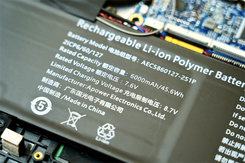 国光电子出品的45.6Wh电池,推测能够满足8小时以上续航时间。