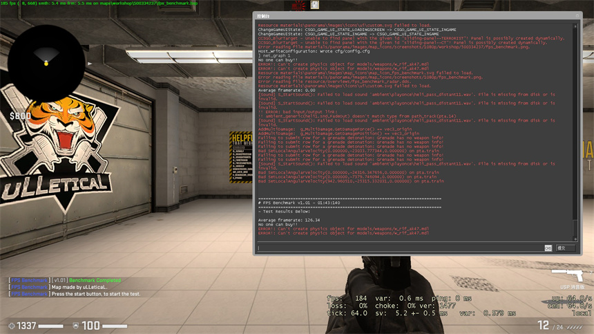 AMD锐龙R5 5560U内置Vega架构核心显卡,图形处理性能大大好于Intel Iris核显,直追NVIDIA MX系列独显。使用热门电竞游戏《CS:GO》进行测试,将画质调整为XXX,平均帧数126 FPS且非常稳定。