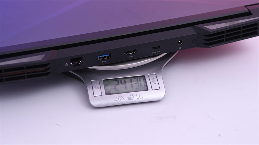 经过实际称重,蛟龙16游戏本的不含电源适配器时整机的重量为2413g,这对于一台16英寸大屏幕的产品来说还是很不错的。