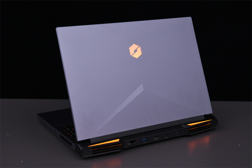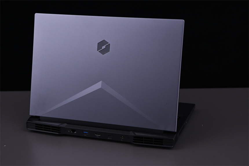 蛟龙16游戏本使用了不同以往的全新模具,A面为铝合金材质,并在中部拥有三角形的凸起线条,LOGO则位于靠上的部位。在机身尾部,蛟龙16还采用了类似跑车式的设计,并在上面有两块高亮的灯带,这总设计能够提供更加炫酷的外观同时将散热鳍片做得更大。