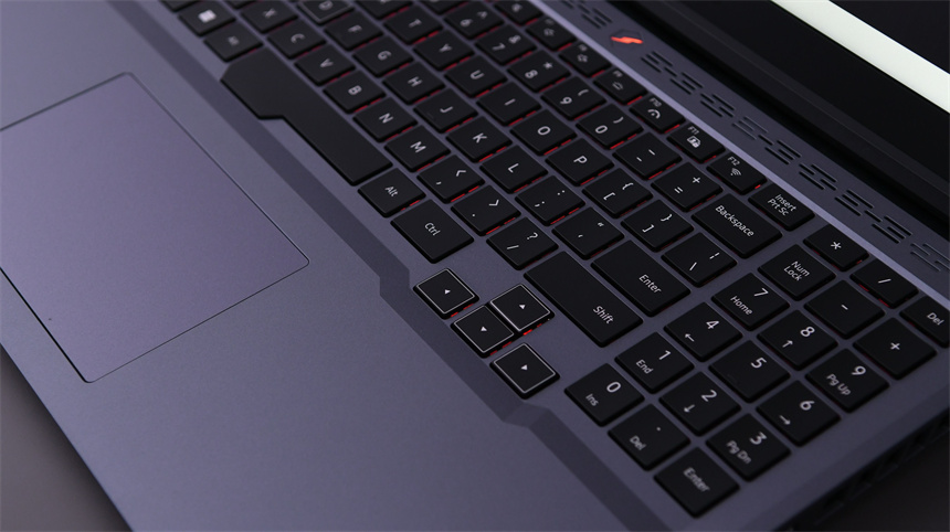 机身接口上,蛟龙16游戏本也很合理,将需要经常插拔的放置在了机身两侧。共有:2.5G有线网口x1、USB 3.2 Gen2 Type-A x1、HDMI 2.1 x1、带DP输出和100瓦PD快充的全功能型USB 3.2 Gen2 Type-C x1、USB 3.2 Gen1 x2、USB 2.0 x1、3.5mm二合一音频 x1。