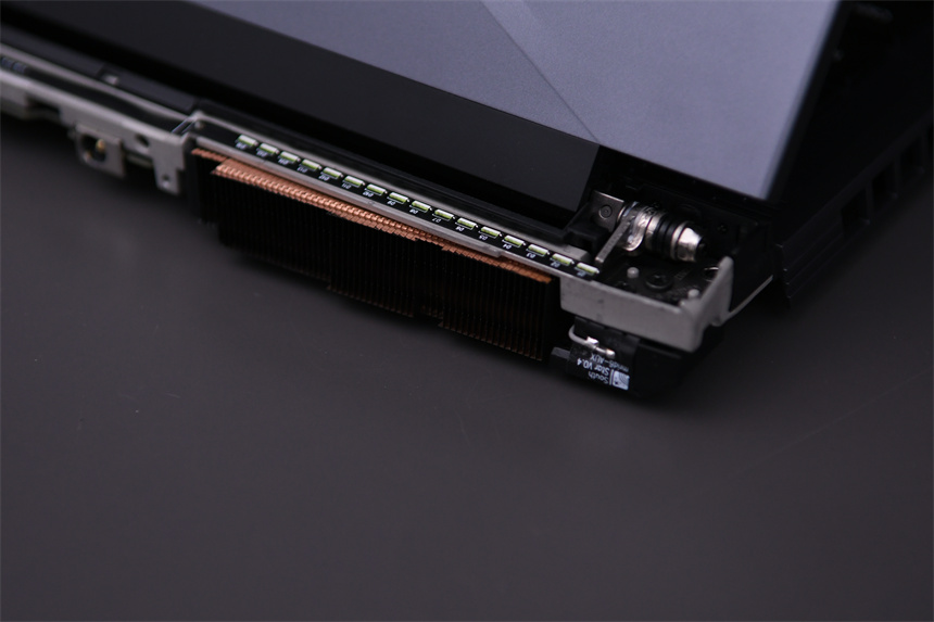 前文提到跑车式尾部设计能让散热鳍片更加厚实,蛟龙16还使用了散热能力更强的纯铜材质鳍片,来进一步提升散热能力。