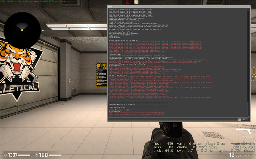 蛟龙16游戏本在《CS:GO》这款流行FPS游戏大作中将分辨率设定为2560x1600同时特效拉至最高,测得平均真是334.99FPS,非常流畅,已经超过240Hz电竞屏的刷新极限。