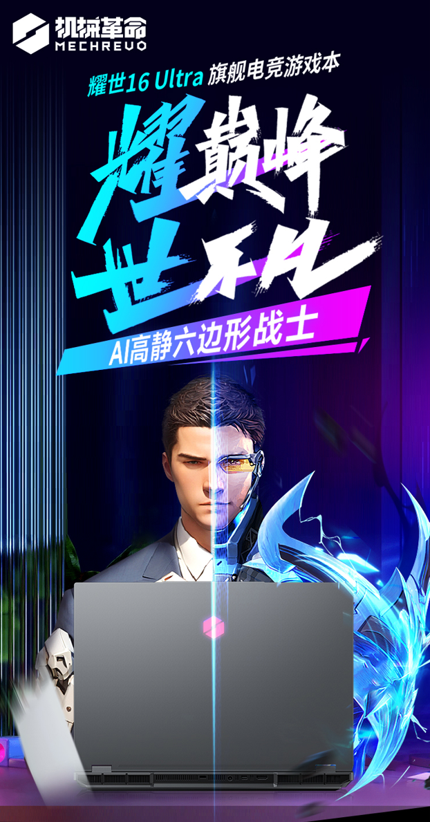 INTEL对于AI高静游戏本标准非常严苛,需要使用更好的模具。这就意味着AI高静游戏本每一台都是精品中的精品。机械革命耀世16 Ultra采用了旗舰级模具,ACD三面全金属机身,质感非常出色。